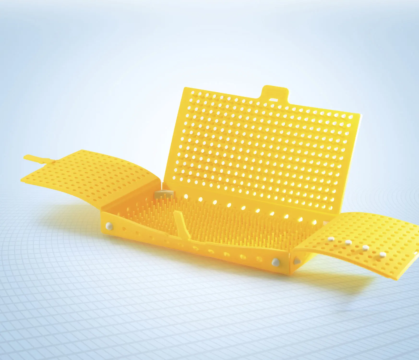 Une boîte en silicone pour protéger vos instruments chirurgicaux pendant et après la stérilisation. Grâce à ses picots souples, elle peut se transformer en support pour la main durant la chirurgie.