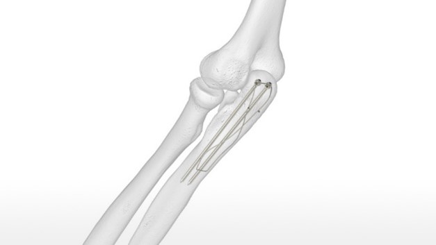 Le système de broches pour haubanage est une solution élégante conçue pour une fixation très peu invasive et sécurisée dans les cas de fractures de la rotule, de l'olécrane et des malléoles, sans irritation (cas des broches de Kirschner) ni migration postopératoire de la broche. Cette solution astucieuse permet de réduire les complications postopératoires qui nécessitent souvent une seconde intervention chirurgicale pour les révisions.